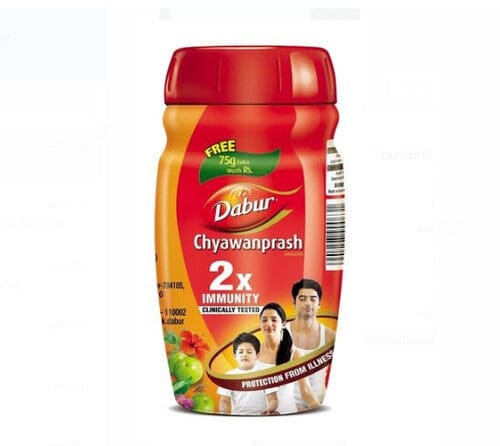 Chyawanprash - Dabur - A recipe used in Ayurveda since ancient times, chyawanprash offers a wide range of health benefits. Dabur Chyawanprash provides strong immunity and good digestion for children and adults alike. Two spoons daily of Dabur Chyawanprash supports immunity and is beneficial for overall health and well-being. It is also good for the digestive and respiratory systems. The primary action of Dabur Chyawanprash is to bolster the immune system and to support the body’s natural ability to fight illnesses. Amalaki (the main ingredient) aids in the elimination of ama (toxins). Therefore, regular use of Dabur Chyawanprash helps strengthen the body’s natural defense systems. It builds the essence of immunity, promoting systemic health and well-being. ingredients of Dabur Chyawanprash are scientifically validated for their beneficial effects on health. It is considered one of the best family tonics—suitable for all ages from young children to the elderly. (Children above 3 years of age).