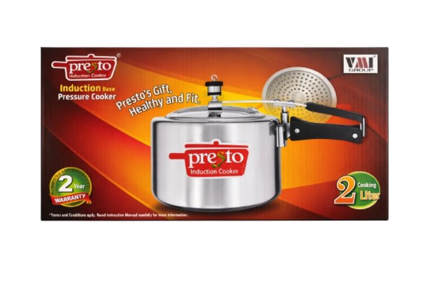 The Prestco 2-litre Induction Pressure Cooker is designed for fast, safe, and energy-efficient cooking. Made from durable, high-quality stainless steel, it is compatible with induction as well as gas stoves. Ideal for daily cooking of rice, lentils, vegetables, curries, and small family meals. Features a secure locking lid, heat-resistant handle, and efficient pressure regulation for consistent results.