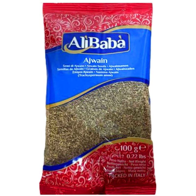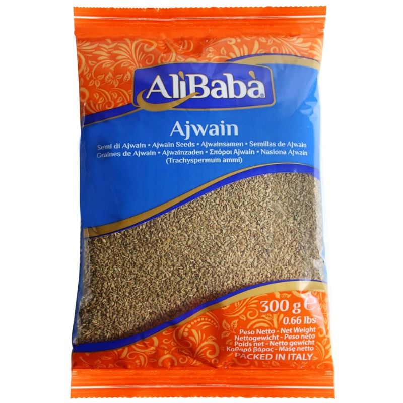 Ajwain Seeds (Carom) 100g, 300g - Ali Baba (pronounced uj-wine) is a seed-like fruit often used in Indian cooking as part of a spice mixture. It looks similar to fennel and cumin seeds and is highly fragrant, smelling like thyme. Its taste, however, is more like oregano and anise due to the bitter notes and strong flavour. Because of its pungency, a little goes a long way.