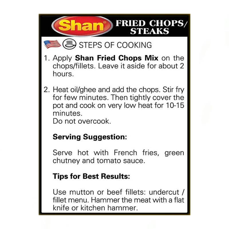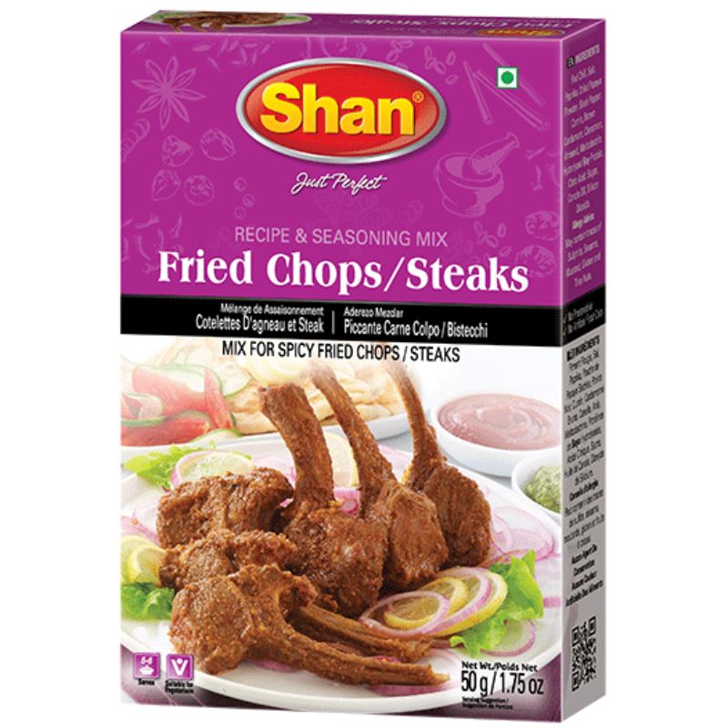 Fried Chops/Steaks 50g - Shan - Shan Fried Chops Masala Mix gives you the perfect blend of spices to help you prepare crispy mouthwatering Mutton Chops for a perfect appetizer platter.