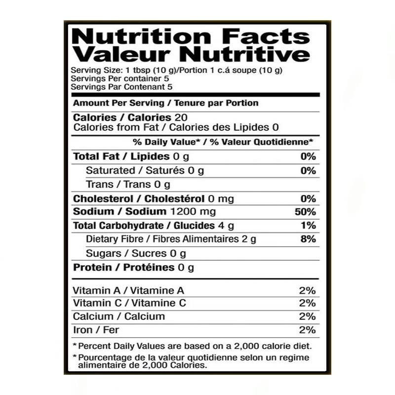 Red Chili, Salt, Paprika, Dried Papaya, Black Pepper, Cumin, Brown Cardamom, Cinnamon, Aniseed, Maltodextrin, Hydrolyzed Soy Protein, Citric Acid, Cane Sugar, Canola Oil, Silicon Dioxide.