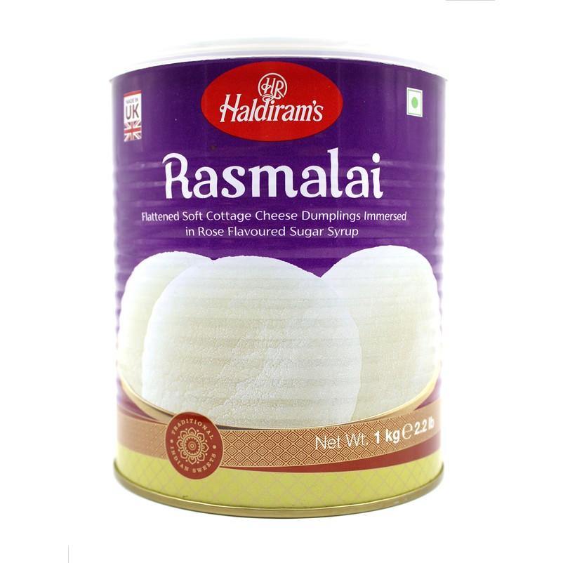Rasmalai 1kg - Haldiram's - Flattened soft coated cheese dumplings immersed in rose flavour sugar syrup.